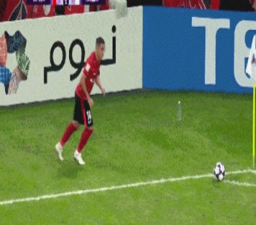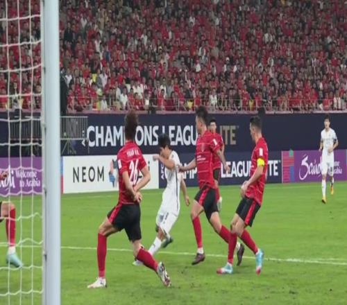 第34分钟,周定洋进球了,这也是成都蓉城顶住了江原队一顿狂攻之后的一次沉重的反击。当时成都蓉城获得了一个角球机会,元敏诚在禁区内摆渡至周定洋的脚下,周定洋迎球便射,将场上的比分改写为1-0领先。